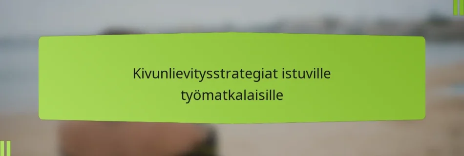Paikallaan istuvat työmatkalaiset kohtaavat usein kipuongelmia, jotka johtuvat pitkittyneestä istumisesta ja huonosta ryhdistä, mikä johtaa epämukavuuteen alueilla kuten alaselässä, niskassa ja hartioissa. Ymmärtämällä nämä yleiset ongelmat yksilöt voivat toteuttaa tehokkaita kivunlievitysstrategioita, mukaan lukien kohdennetut venyttelyharjoitukset ja oikeat ryhtimuutokset, parantaakseen yleistä mukavuuttaan työmatkojen aikana. Key sections in the article: Toggle Mitkä ovat yleiset kipuongelmat paikallaan istuvilla …