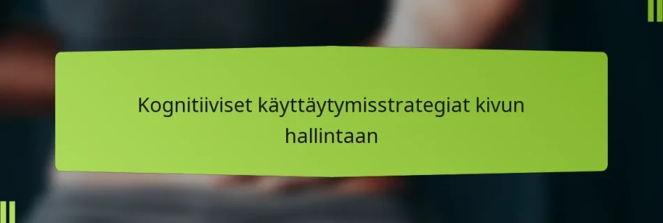 Kognitiiviset käyttäytymisstrategiat kivun hallintaan ovat tehokkaita tekniikoita, jotka on suunniteltu auttamaan yksilöitä muokkaamaan kipukokemuksiaan ja kehittämään terveempiä selviytymiskeinoja. Keskittymällä negatiivisten ajatusmallien muuttamiseen ja selviytymisvalmiuksien parantamiseen, nämä strategiat käsittelevät psykologisia tekijöitä, jotka vaikuttavat krooniseen kipuun, parantaen lopulta sekä kivun hallintaa että yleistä elämänlaatua. Key sections in the article: Toggle Mitkä ovat kognitiiviset käyttäytymisstrategiat kivun hallintaan? Kognitiivisen …