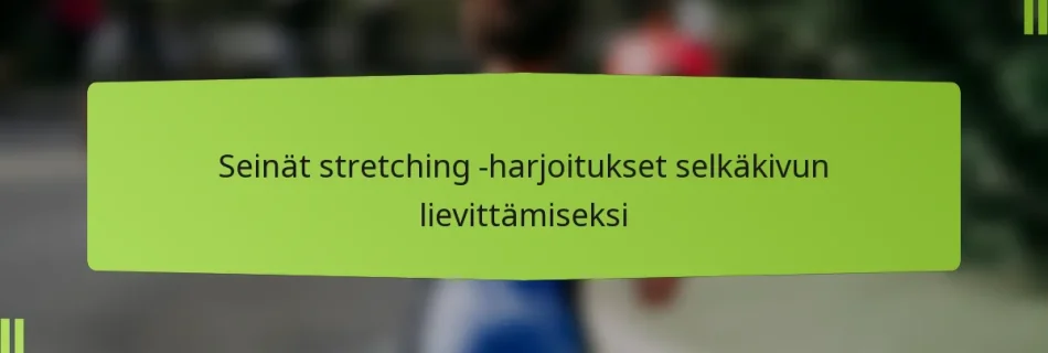 Seinät venyttävät harjoitukset selkäkipujen lievittämiseksi hyödyntävät seinän tukea tehokkaasti venyttääkseen ja vahvistaakseen selän lihaksia. Nämä kohdennetut venytykset parantavat joustavuutta, vähentävät jännitystä ja auttavat lievittämään epämukavuutta, mikä tekee niistä arvokkaan lisän kipujen hallintarutiiniisi. Harjoittelemalla näitä liikkeitä oikealla tekniikalla ja tietoisuudella voit merkittävästi parantaa selkäsi terveyttä ja yleistä hyvinvointiasi. Mitkä ovat seinät venyttävät harjoitukset selkäkipujen lievittämiseksi? Seinät …