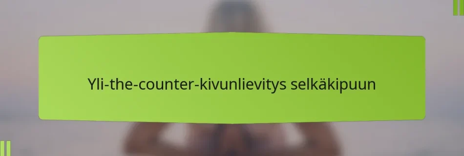 Apteekista ilman reseptiä saatavat (OTC) kipulääkkeet, kuten ibuprofeeni, asetaminofeeni ja naprokseeni, voivat tarjota tehokasta helpotusta selkäkipuun vähentämällä tulehdusta ja epämukavuutta. On tärkeää noudattaa suositeltuja annoksia ja ottaa huomioon yksilölliset terveystekijät turvallisen ja tehokkaan käytön varmistamiseksi. Tieto mahdollisista haittavaikutuksista ja yhteisvaikutuksista voi edelleen parantaa kipujen hallintastrategioita. Key sections in the article: Toggle Mitkä ovat tehokkaimmat apteekista …