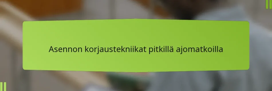 Pitkät ajomatkat voivat rasittaa kehoasi, joten asentokorjauksen toteuttaminen on välttämätöntä mukavuuden ja turvallisuuden vuoksi. Toteuttamalla tehokkaita tekniikoita, kuten säätämällä istuintasi, varmistamalla oikean tuen ja sisällyttämällä säännöllistä liikettä, voit parantaa ajokokemustasi ja vähentää väsymystä. Ergonomisen asennon priorisoiminen parantaa paitsi mukavuutta myös edistää parempaa verenkiertoa ja keskittymistä tielle. Key sections in the article: Toggle Mitkä ovat tehokkaita …