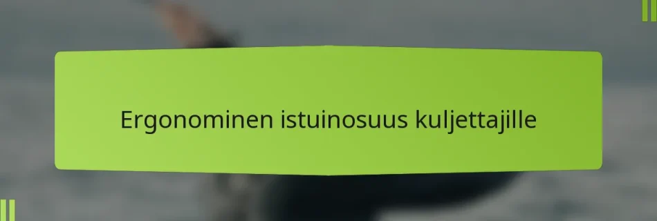 Ergonominen istuinasento kuljettajille on välttämätöntä mukavuuden, turvallisuuden ja kokonaisvaltaisen ajokokemuksen parantamiseksi. Optimoimalla kuljettajan istuimen asettelu yksilöt voivat minimoida kehon rasitusta, edistää hyvää ryhtiä ja estää vammoja pitkillä matkoilla. Oikeat säädöt eivät ainoastaan helpota epämukavuutta, vaan myös parantavat ajosuoritusta ja turvallisuutta. Key sections in the article: Toggle Mitä ergonominen istuinasento kuljettajille tarkoittaa? Ergonomisen istuinasennon määritelmä Ergonomian …