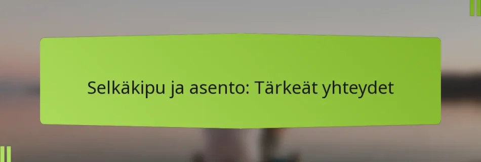 Oikea asento on olennaista selkäkivun lievittämiseksi, sillä se auttaa ylläpitämään selkärangan luonnollista linjausta. Varmistamalla, että selkäranka on oikein sijoitettu, yksilöt voivat vähentää lihasten ja nivelsiteiden rasitusta, mikä johtaa vähempään epämukavuuteen ja parempaan terveyteen. Yksinkertaiset säädöt päivittäisissä toiminnoissa, kuten ajamisessa tai liikunnassa, voivat edelleen parantaa asentoa ja tarjota merkittävää helpotusta selkäkipuun. Key sections in the article: …