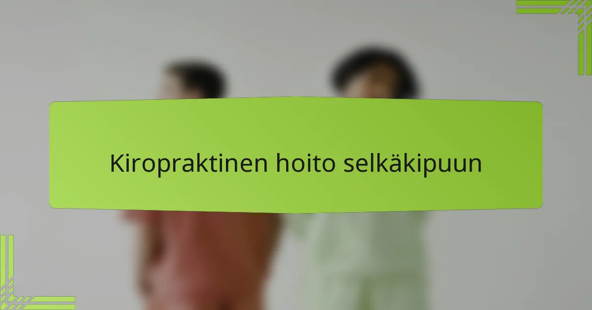 Akuutit vs. krooniset selkäkivut: kiropraktiset lähestymistavat