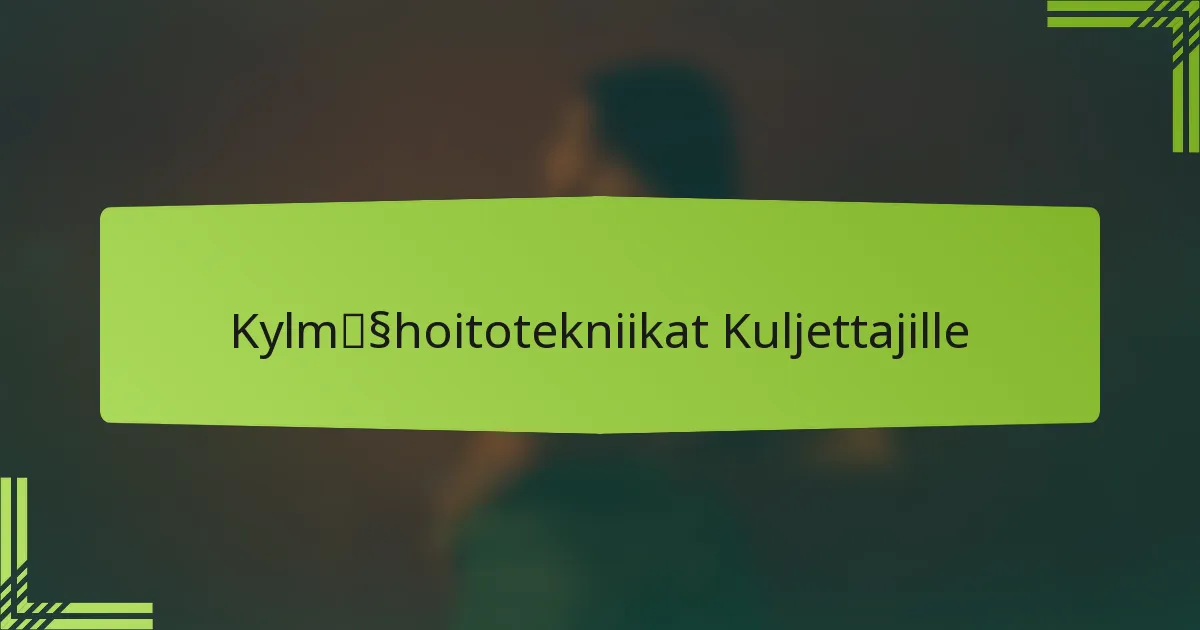 Mitkä kylmähoitotekniikat ovat tehokkaimpia kuljettajille?