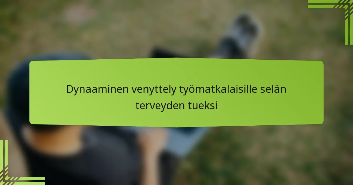 Dynaaminen venyttely tarjoaa useita etuja selän terveydelle, erityisesti työmatkalaisten keskuudessa. Se auttaa lisäämään verenkiertoa lihaksissa, parantaen joustavuutta ja vähentäen selän jäykkyyttä. Tämä voi johtaa parempaan ryhtiin ja vähentää loukkaantumisriskiä.