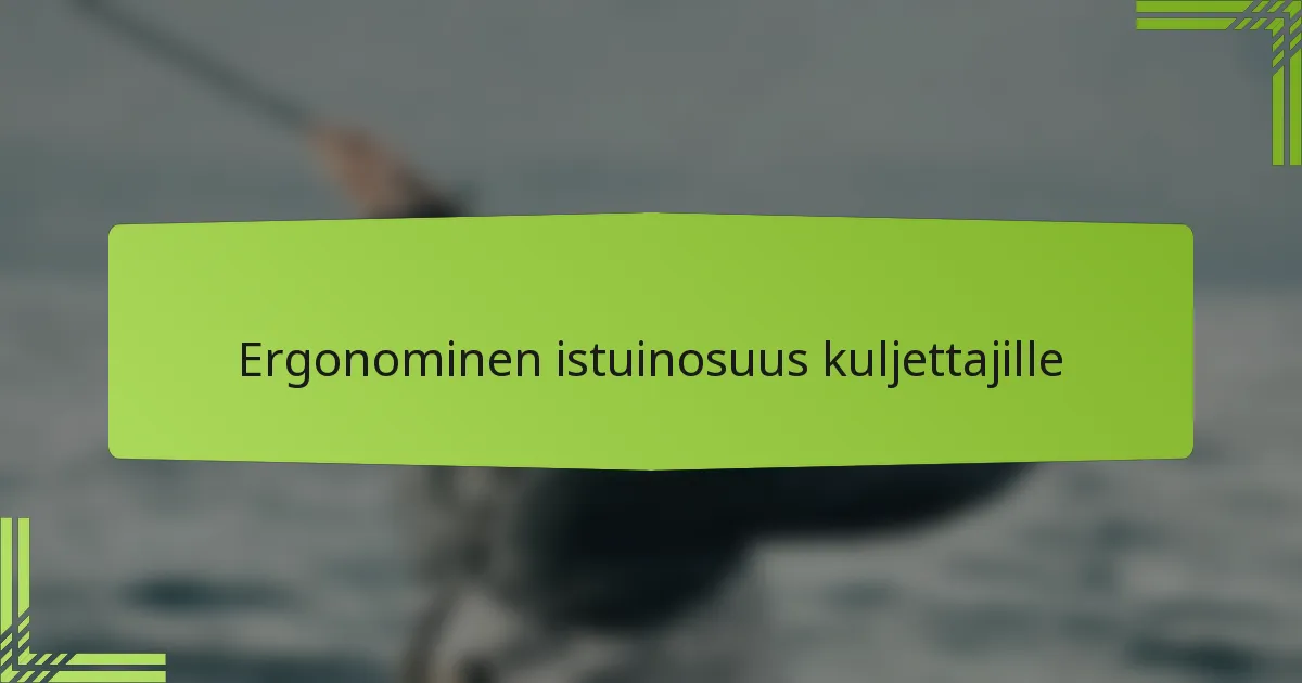 Lisäksi ergonominen istuminen voi parantaa keskittymistä ja tarkkaavaisuutta, sillä kuljettajat ovat vähemmän alttiita häiriöille epämukavuuden vuoksi. Tämä on erityisen tärkeää pitkillä matkoilla, joissa jatkuva huomio on ratkaisevaa turvallisuuden kannalta.