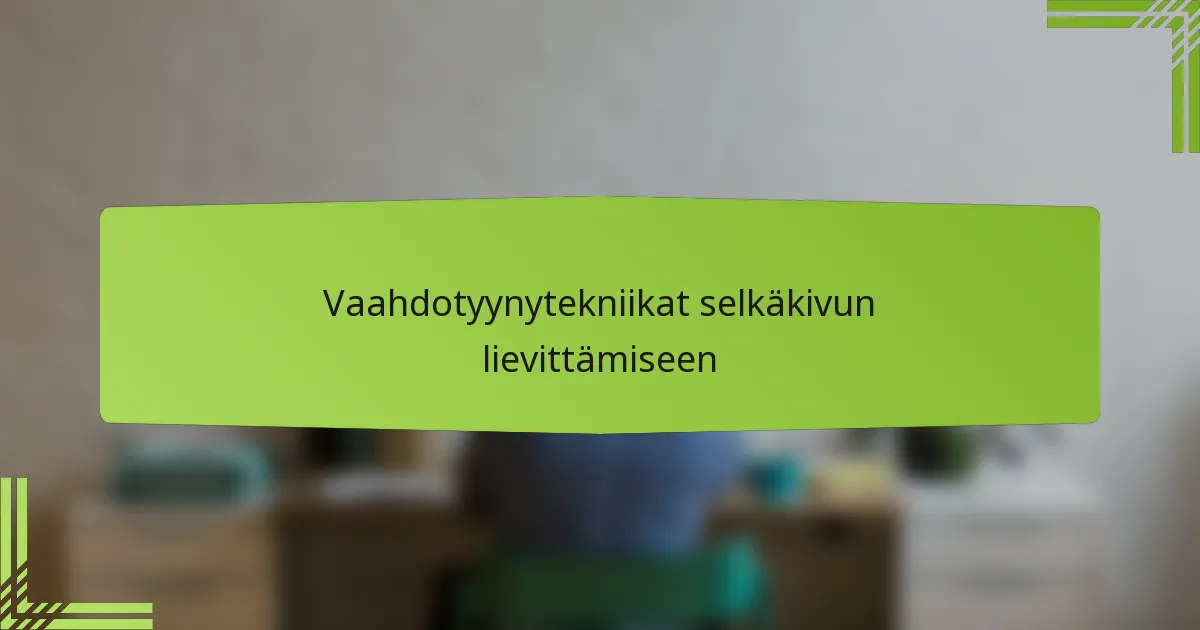 Mitkä ovat tehokkaita vaahdotustekniikoita selkäkipujen lievittämiseen?