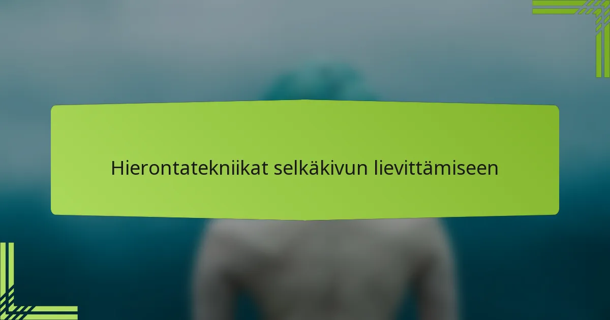 Mitkä ovat pääasialliset hierontatekniikat selkäkivun lievittämiseksi?