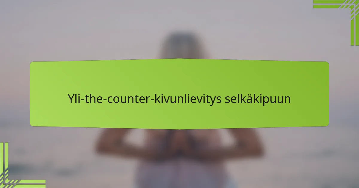 Apteekista ilman reseptiä saatavat (OTC) kipulääkkeet, kuten ibuprofeeni, asetaminofeeni ja naprokseeni, voivat tarjota tehokasta helpotusta selkäkipuun vähentämällä tulehdusta ja epämukavuutta. On tärkeää noudattaa suositeltuja annoksia ja ottaa huomioon yksilölliset terveystekijät turvallisen ja tehokkaan käytön varmistamiseksi. Tieto mahdollisista haittavaikutuksista ja yhteisvaikutuksista voi edelleen parantaa kipujen hallintastrategioita.