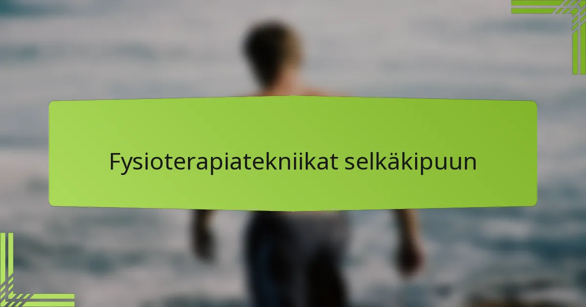 Mitkä ovat tärkeimmät fysioterapian tekniikat selkäkivun hoidossa?