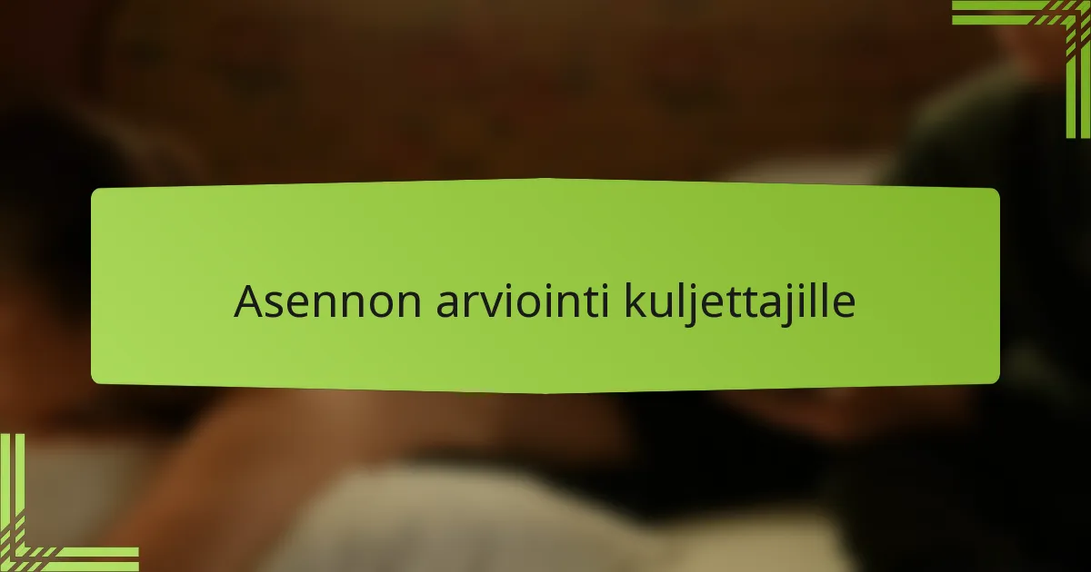 Ajajien asentotarkastus on olennaista arvioitaessa, kuinka kuljettajan keho on kohdistettu ja sijoitettu ratin takana. Oikea asento ei ainoastaan paranna mukavuutta ja vähennä väsymystä, vaan sillä on myös tärkeä rooli turvallisten ajotapojen varmistamisessa. Tunnistamalla ja korjaamalla huonoa asentoa kuljettajat voivat vähentää terveysriskejä ja parantaa kokonaisvaltaista ajokokemustaan.