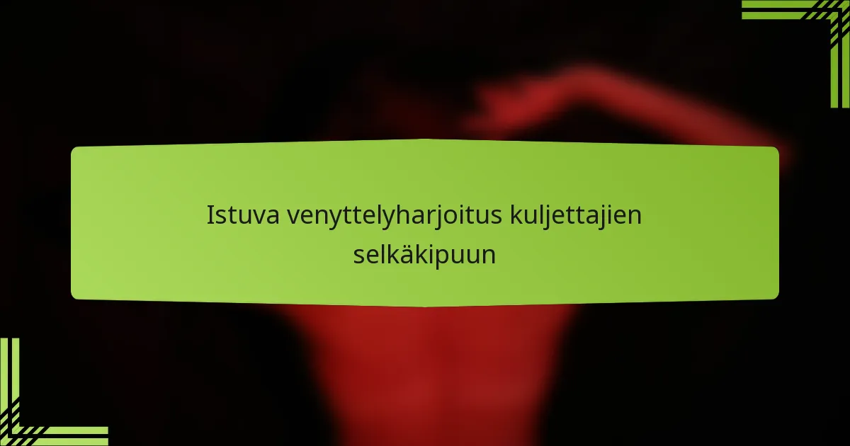 Mitkä istuma-asennossa tehtävät venyttelyharjoitukset voivat lievittää selkäkipua kuljettajille?