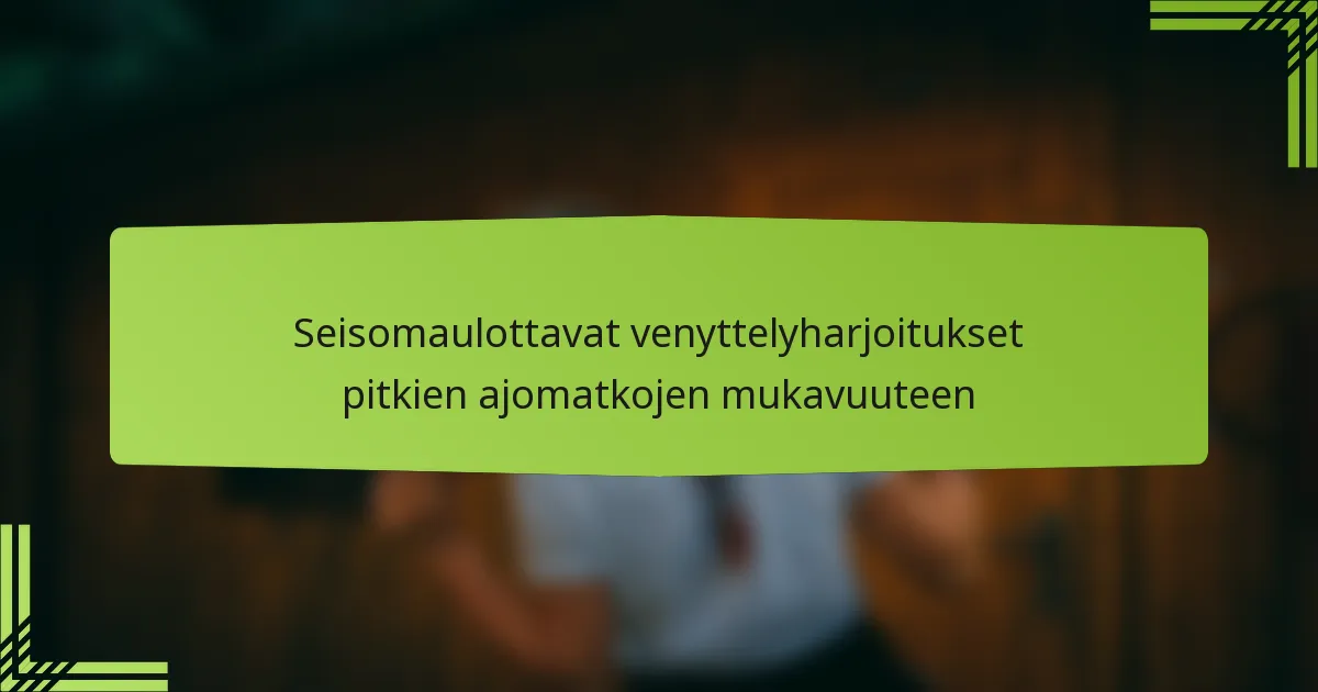 Kuinka pystyvenytykset voivat lievittää epämukavuutta pitkien ajomatkojen aikana?
